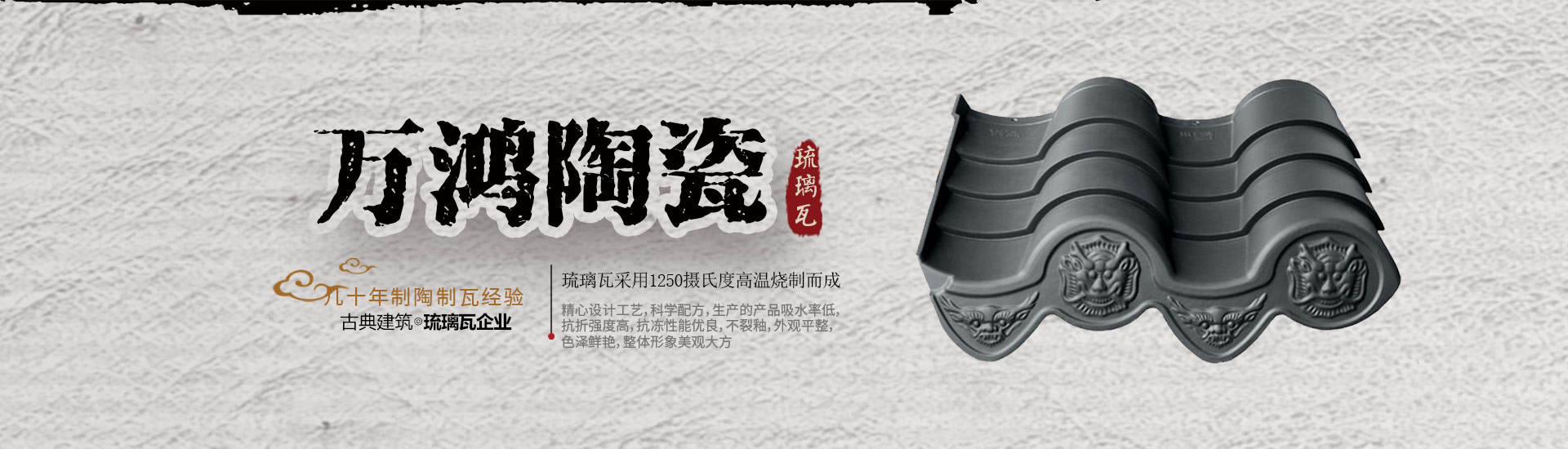 宜興市萬鴻陶瓷有限公司是國內(nèi)生產(chǎn)古建琉璃瓦企業(yè),也是宜興市琉璃瓦行業(yè)龍頭骨干企業(yè)。琉璃瓦采用1250攝氏度高溫?zé)贫?,公司座落?jīng)濟(jì)發(fā)達(dá)的宜興市丁山鎮(zhèn),臨近寧杭高速公路、新長鐵路、錫宜高速和104國道,交通十分便利?! ∪f鴻陶瓷擁有幾十...